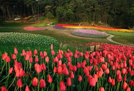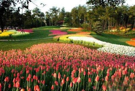 石象湖因湖区有千年古刹石象寺而得名,景区位于成都市蒲江县境内,距成都86公里,森林覆盖率达90%以上,是成都平原的“天然氧吧”。石象湖畔鲜花如海,四季如春,引进荷兰国花郁金香和世界各种名贵花卉,建设了中国西部国际花卉基地,一年一度的郁金香节3—4月是石象湖最重要的节日。象征着高贵与幸福的郁金香是荷兰的国花,它色彩艳丽丰富,花朵玲珑可爱,从含苞待放至花朵盛开,呈现出不同姿态的美,因此有人赞誉郁金香是“花中皇后”。